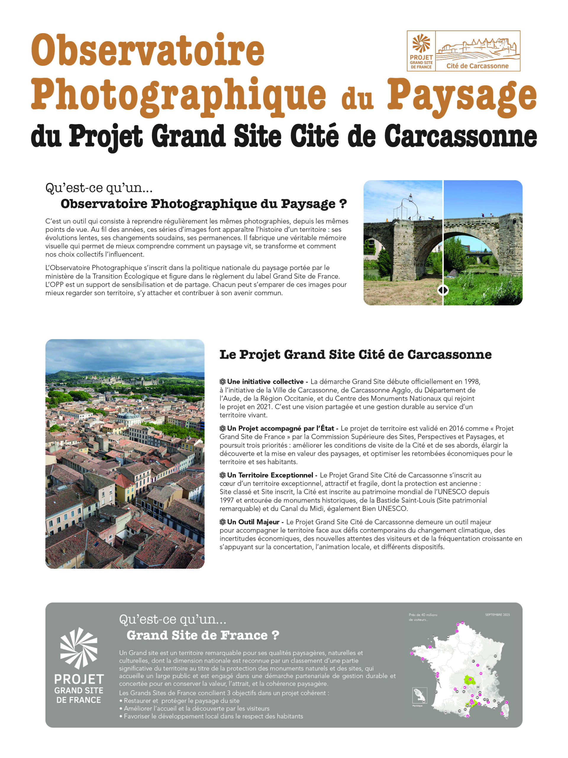 Le Projet Grand Site de la Cité de Carcassonne a engagé depuis 2024 un Observatoire Photographique du Paysage (OPP). Cet outil permet de suivre, dans la durée, l’évolution des paysages et des usages sur le territoire.
